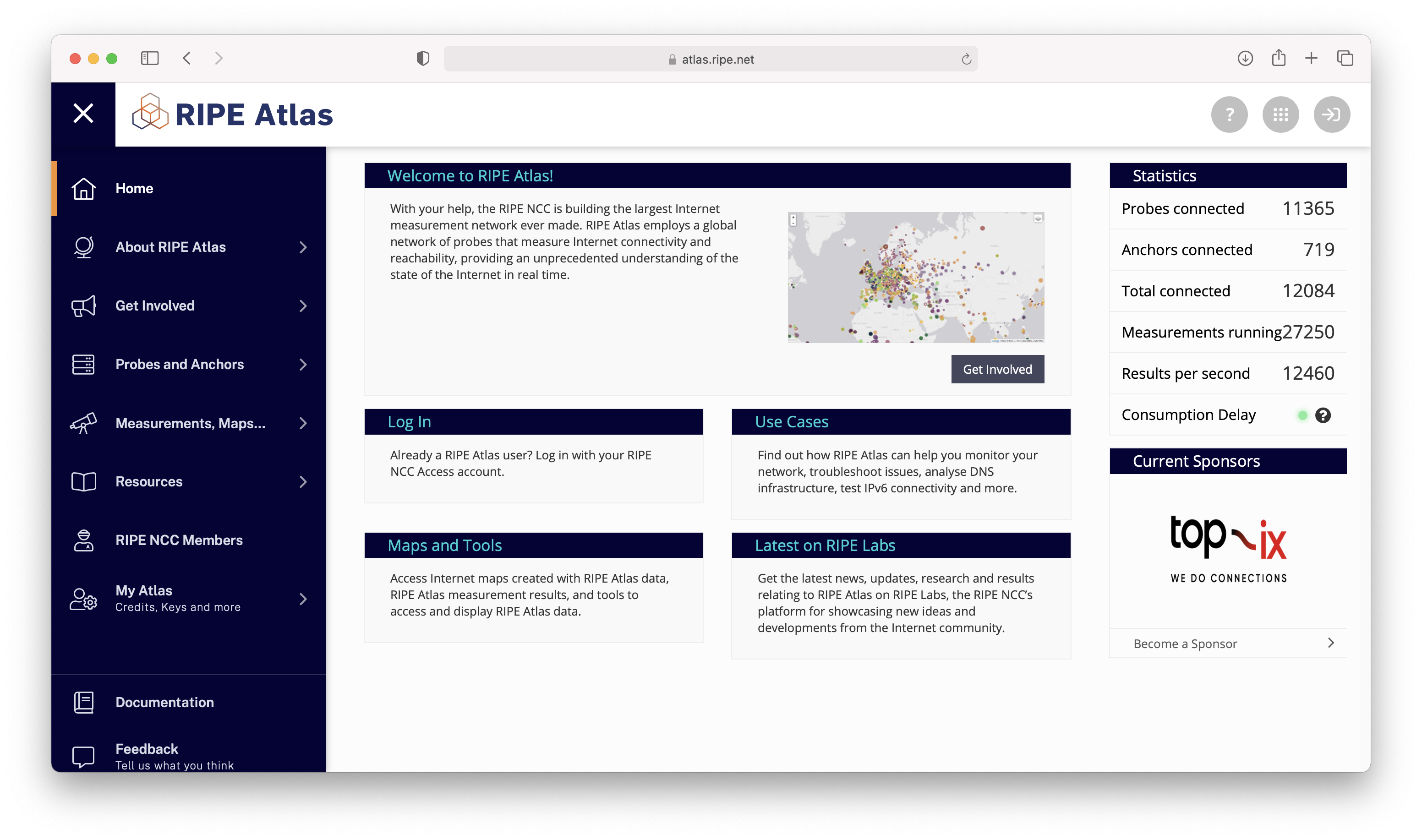 'RIPE NCC' kurumunun bir projesi olan RIPE Atlas, dünyanın çeşitli bölgelerindeki gönüllüler tarafından kurulan bir ağa sahiptir. Bu ağı kullanarak internet adreslerine otomatik erişim testleri gerçekleştirilebilir. Dünyadaki internet durumunun takip edilebilmesi ve sorunsuz kalabilmesi için önemli olan bu ağa biz de destek veriyoruz. Buradaki haklarımızla da (credits) kendimiz dünya çapında network testleri gerçekleştiriyoruz.