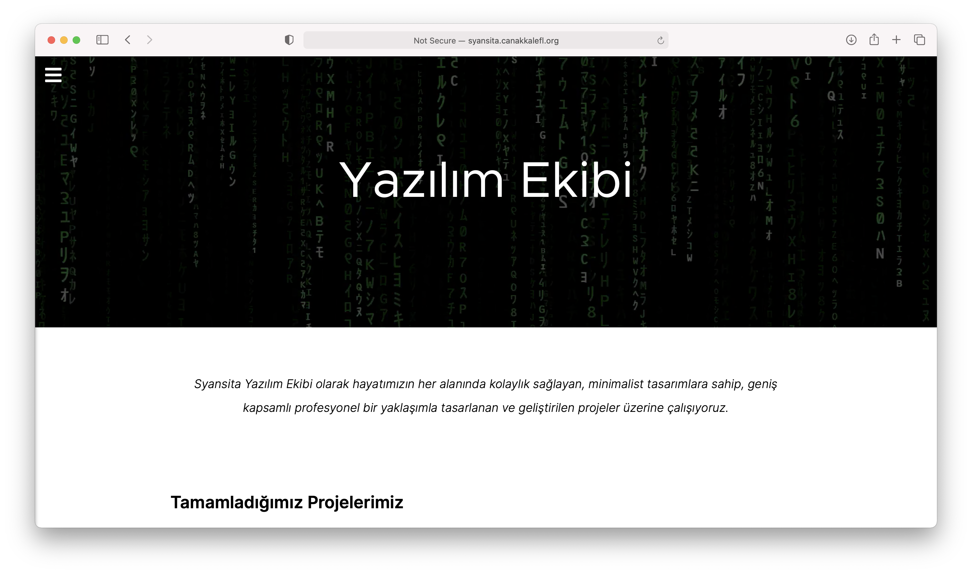 Syansita Yazılım Ekibi olarak hayatımızın her alanında kolaylık sağlayan, minimalist tasarımlara sahip, geniş kapsamlı profesyonel bir yaklaşımla tasarlanan ve geliştirilen projeler üzerine çalışıyoruz.